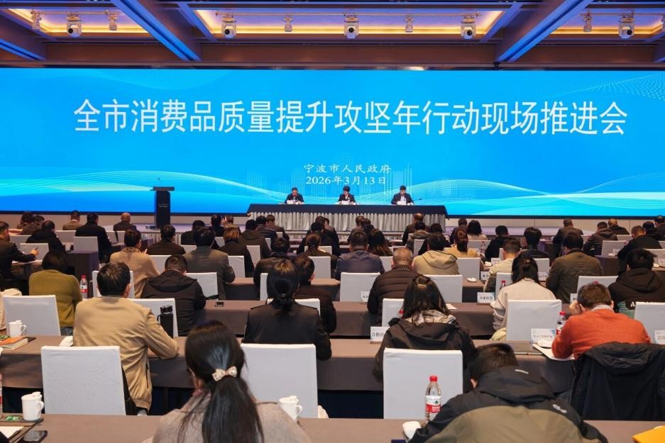 为深入贯彻落实《宁波市消费品质量提升行动方案(2025—2027年)》要求,全面吹响消费品质量提升攻坚号角,2026年3月13日上午,全市消费品质量提升攻坚年行动现场推进会在慈溪市举行。省市场监督管理局二级巡视员王新亮,宁波市副市长金珊、市级有关单位、各区(县、市)政府(管委会)分管领导及市场监管部门主要负责同志,部分消费品生产经营单位、行业协会(商会)代表参加了会议。会议由市市场监管局局长、党委书记陈坚军主持。