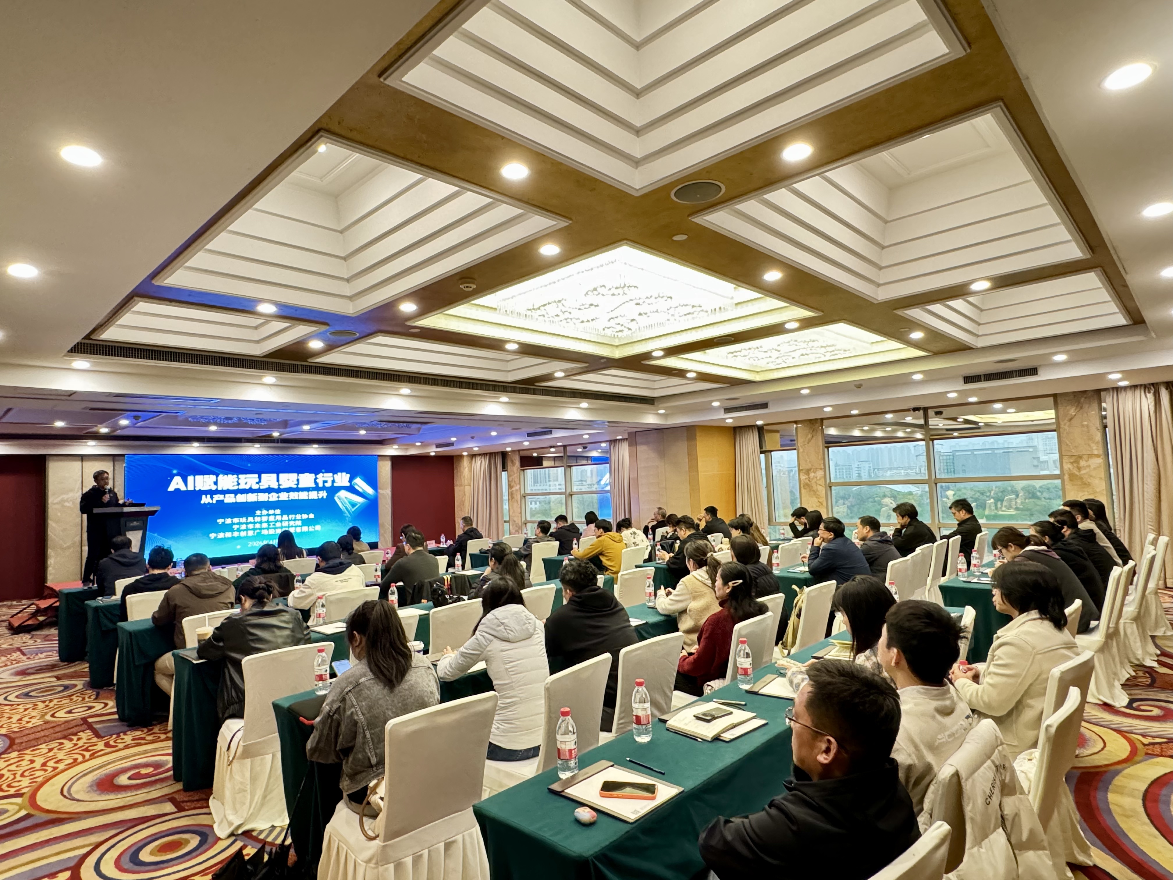 2026年4月3日下午,“AI赋能玩具婴童行业——从产品创新到企业效能提升”专题培训会在宁波阳光豪生大酒店成功举办。本次培训会由宁波市玩具和婴童用品行业协会、宁波未来工业研究院、宁波和丰创意广场投资经营有限公司联合主办,特邀宁波未来工业研究院院长陈军涛及陈功教授担任主讲嘉宾,恒兴、惠尔顿、美乐雅、蓝兔子、美乐、优优象等多家行业重点企业近70位负责人及技术骨干参加,围绕AI技术在玩具婴童行业的落地应用与高质量发展路径开展深入研讨,培训由协会副会长兼秘书长胡天明主持。