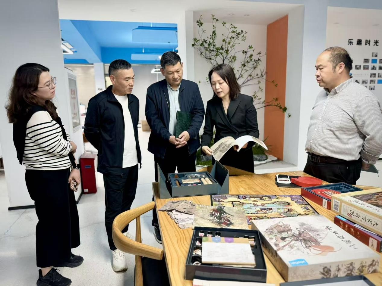 随后,调研一行前往宁波鳐鳐鱼文化科技有限公司,实地察看企业产品展厅、研发中心,详细了解企业从代工生产向原创设计转型、打造“国风宇宙”特色桌游品牌的发展历程、核心优势及发展痛点。作为国内新锐原创桌游企业,鳐鳐鱼公司依托宁波完善的桌游产业链优势,聚焦亲子家庭与益智教育核心市场,深耕文化赋能,成功推出《大宋百商图》《山河之旅》等一系列兼具文化内涵、益智属性与市场竞争力的爆款产品,不仅成功入驻山姆会员店等国内主流零售渠道,更顺利远销欧洲市场,实现了优秀中华传统文化的创新性转化与海外传播。