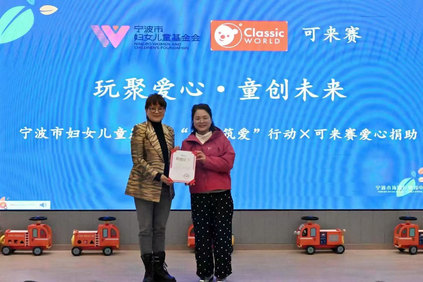 3月26日上午,协会常务副会长单位宁波市恒兴玩具有限公司联合宁波市妇女儿童基金会、鄞州区妇联,在五乡镇中心幼儿园举办“玩聚爱心 童创未来”鄞州区首场捐赠活动。恒兴玩具旗下品牌“可来赛”向五乡镇两所幼儿园捐赠爱心玩具,其中五乡镇中心幼儿园获赠951件、价值70479元,五乡镇宝幢幼儿园获赠601件、价值44522元。