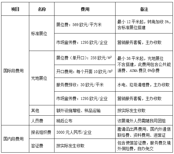 五、参展费用: (注:欧元请以汇出当日中国银行卖出价折合人民币计算)